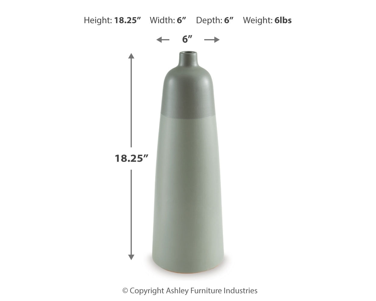 | Vase | 6" | 6" | 18" |